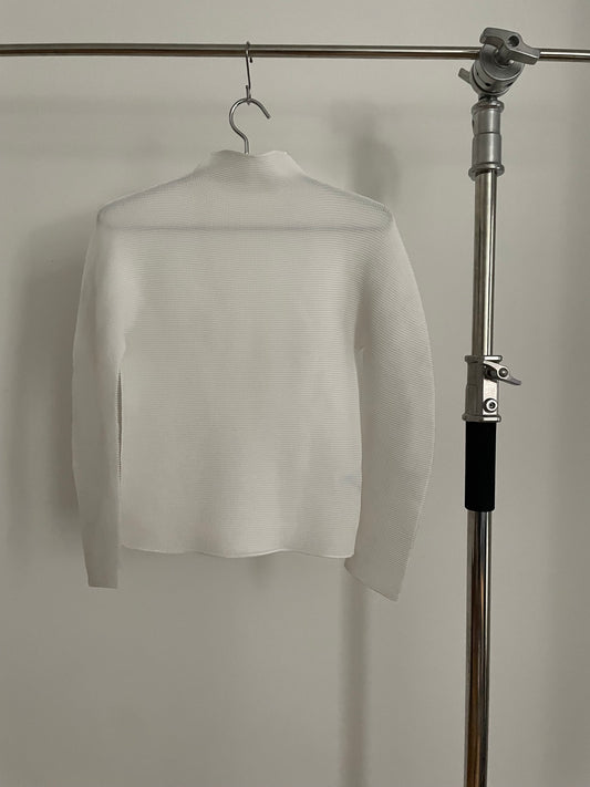 me Issey Miyake white waffle pleated long sleeve mock neck
