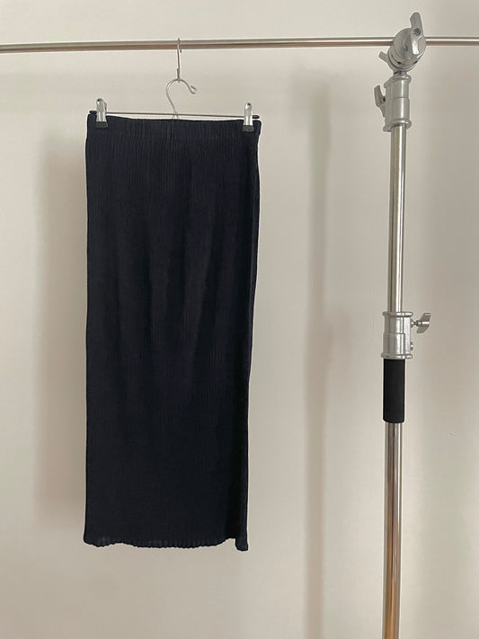 Issey Miyake White Label navy pleated midi skirt