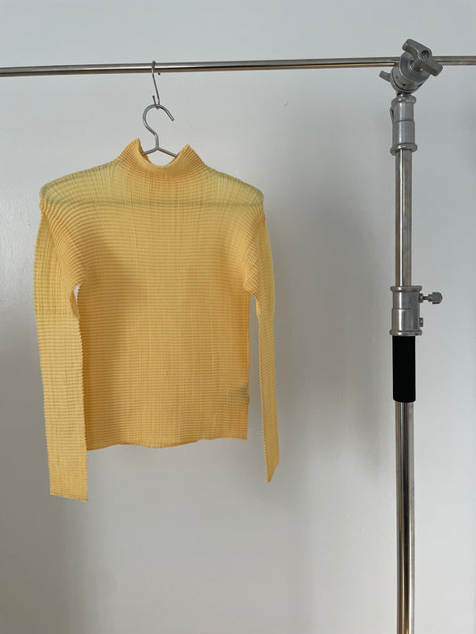 Issey Miyake yellow waffle pleated long sleeve turtleneck