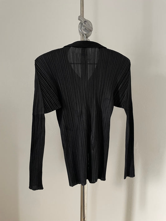 Pleats Please Issey Miyake black button up blouse